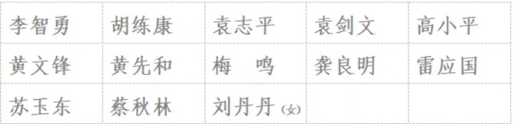 (共13名,按得票多少排序,得票相同的按姓氏筆畫為序)